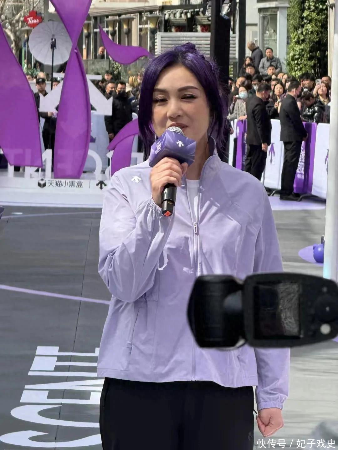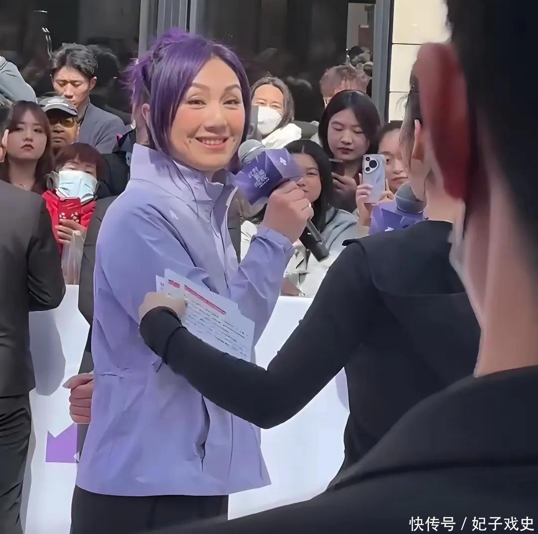 最近,歌手杨千嬅去上海参加活动了,今年51岁的她,染着紫色的头发,穿着淡紫色的外套,看起来气色不错。